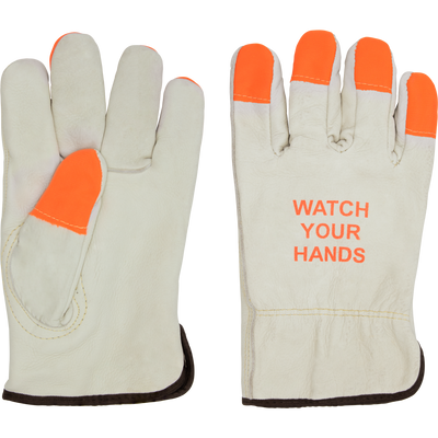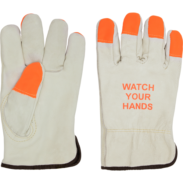 Hi Vis Fingertips & Print Back Cowhide Grain Leather Gloves