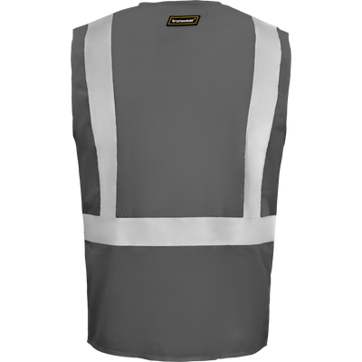 Economy Polyester Mesh Reflective Zipper Safety Vest w/ 5 Pockets & Mic Tabs