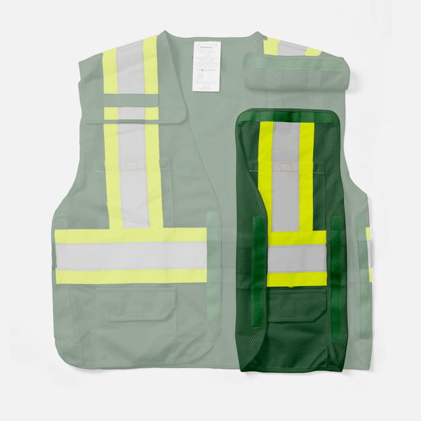 Type O Class 1 Hi Vis Reflective Two Tone 5-Point Breakaway Hook & Loop Safety Vest w/ 6 Pockets & Mic Tabs