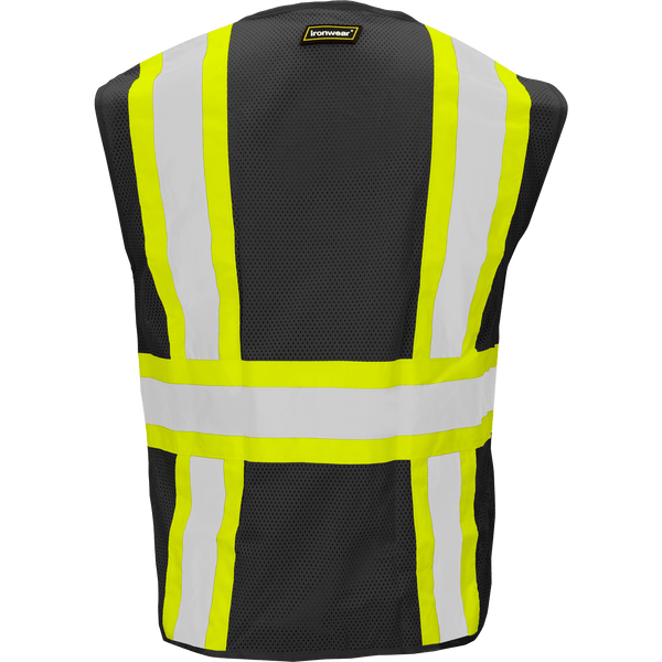 Type O Class 1 Hi Vis H-Back Two Tone Reflective Zipper Safety Vest w/ 6 Pockets & Mic Tabs