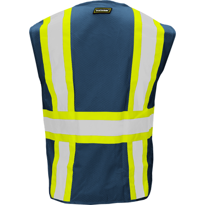Type O Class 1 Hi Vis H-Back Two Tone Reflective Zipper Safety Vest w/ 6 Pockets & Mic Tabs
