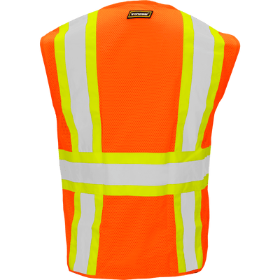 Type R Class 2 Hi Vis H-Back Two Tone Reflective Zipper Safety Vest w/ 6 Pockets & Mic Tabs
