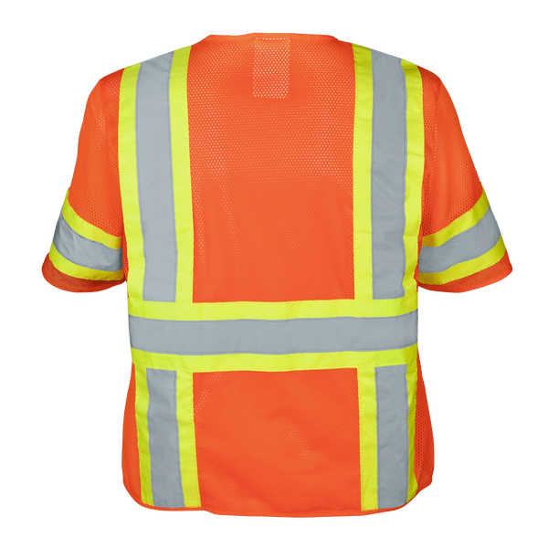 Type R Class 3 Hi Vis Reflective Two Tone 6 Pocket Mesh Zipper Safety Vest w/ Short Sleeves