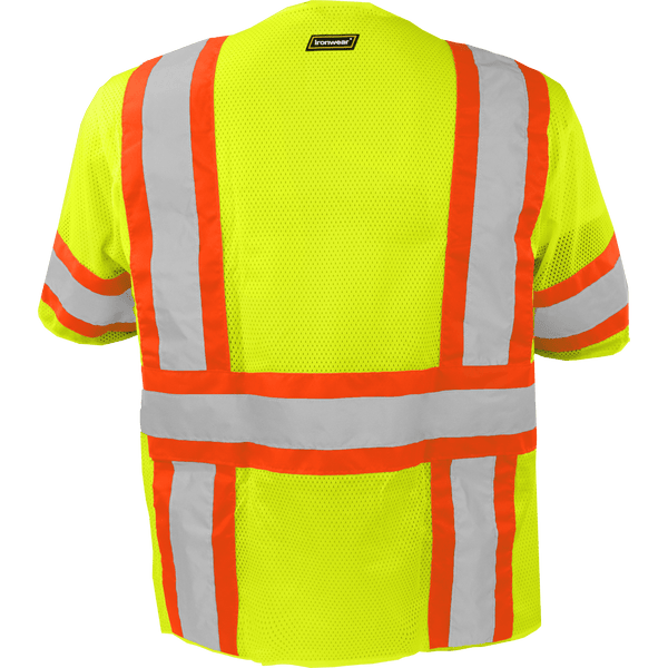 Type R Class 3 Flame Retardant Hi Vis Reflective Polyester Mesh Short Sleeve Safety Vest w/ 6 Pockets