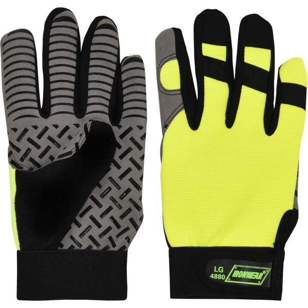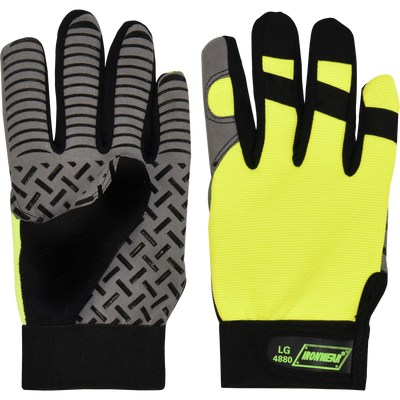 Hi Vis Mechanic Gloves w/ Silicone Dotted Palm