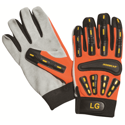 Polyester/Spandex Lined Impact Work Gloves w/ Leather Palm