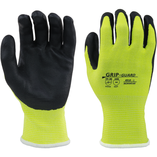 Hi Vis HPPE Foam Nitrile Palm Coated A4 Cut Resistant Gloves