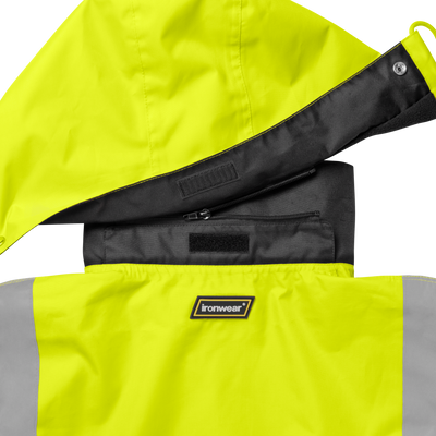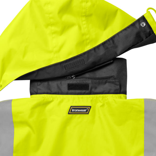 Class 3 Two Tone Hi Vis Drawstring Hooded Bomber Jacket w/ Reflective Tape